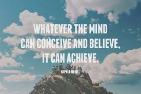 This is where we often have our battles and our failures to achieve our dreams. Yet many of us dont believe in this. Whatever Your Mind Can Conceive and Believe IT Can Achieve NAPOLEAN HILL.